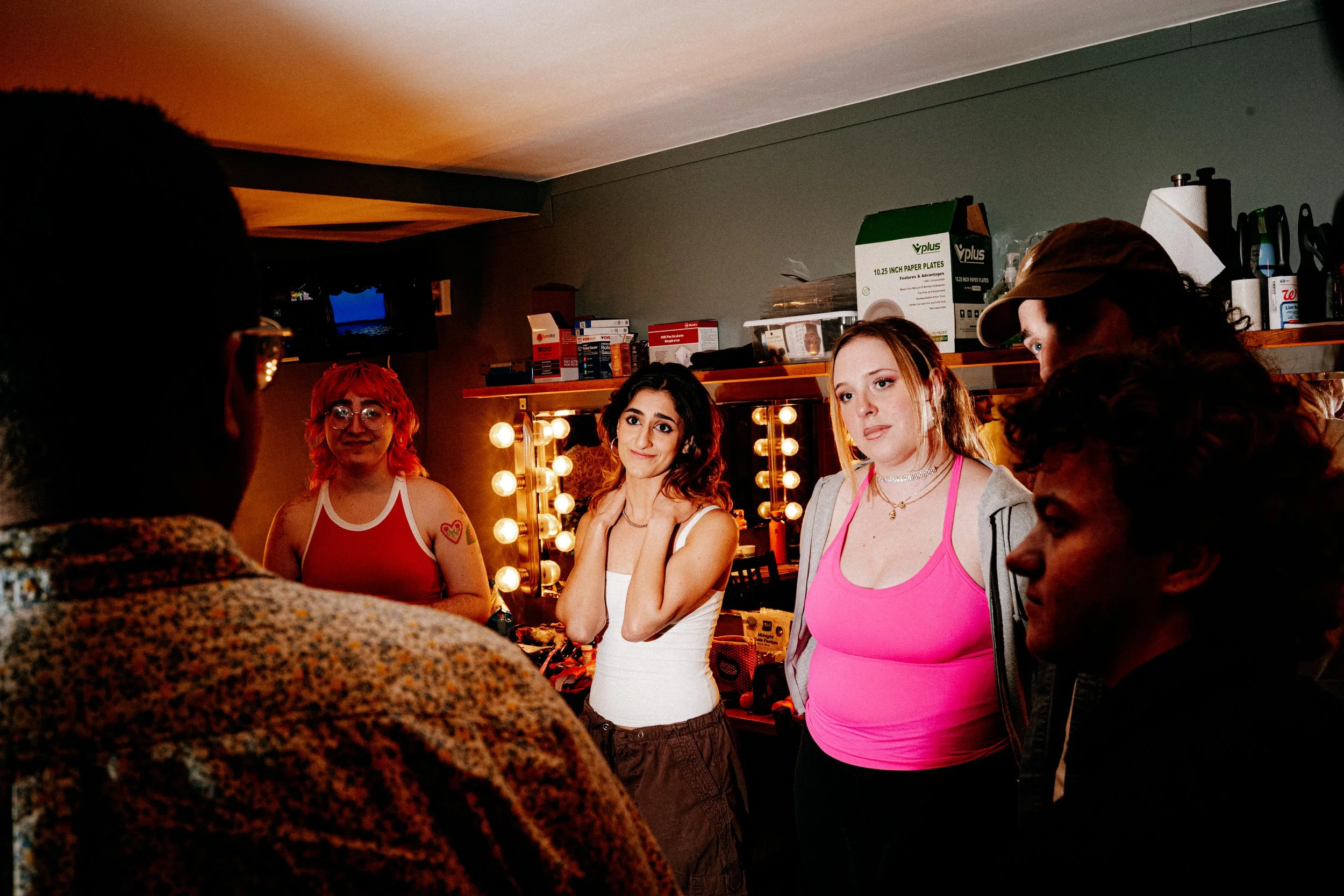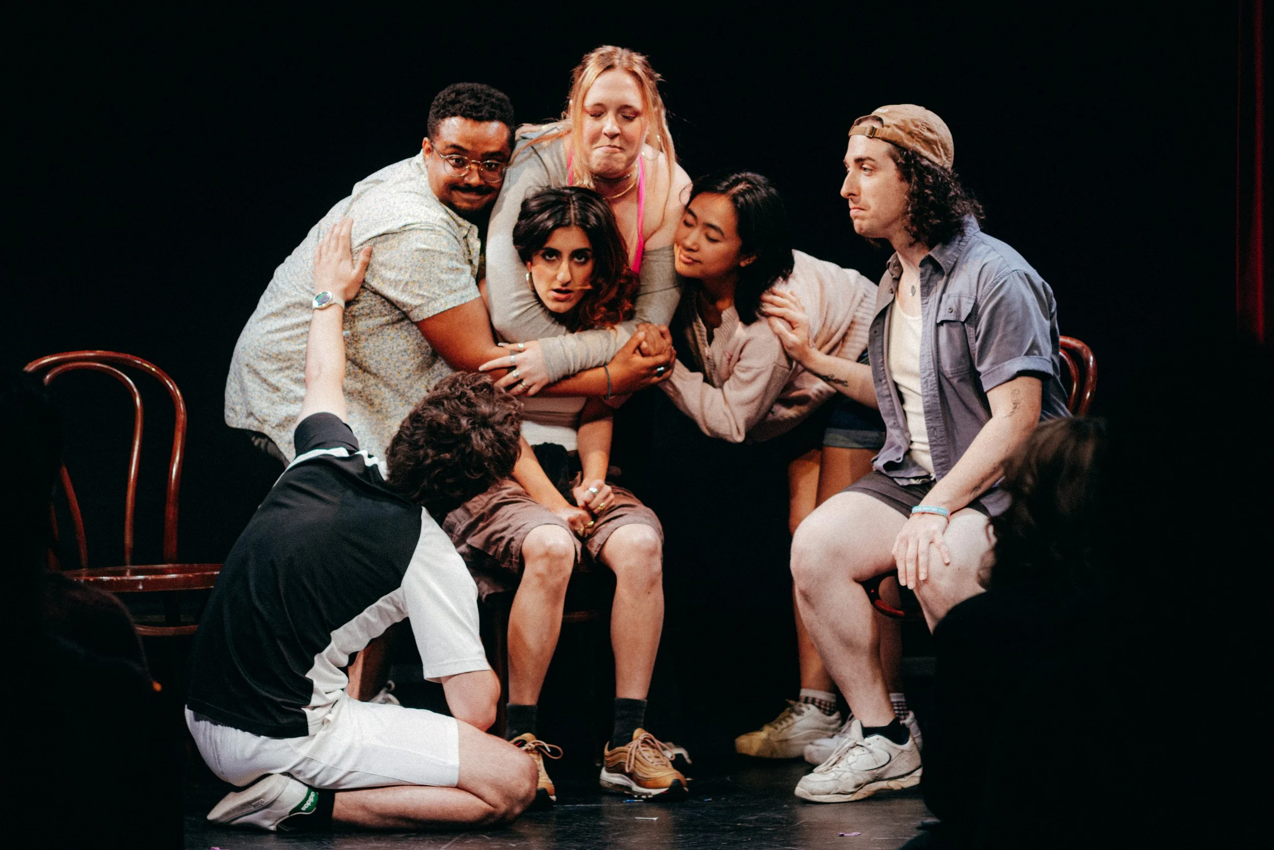 (Photographed by Geve Penaflor)//Alex Morrison-will//Anahita Monfared-Emily//Austen Parent-ASM//Ben Topa-Ensemble Men//EM Hausmann-Director//Gabriel Ethridge-Arden//Jack Underwood-ASM//Lulu Fairclough-Stewart-JEssica//Regina Famatigan-Ensemble women//Ruth Jaensubhaki-Stage Manager//WhimZee Lee Hanna-Projection Designer//.